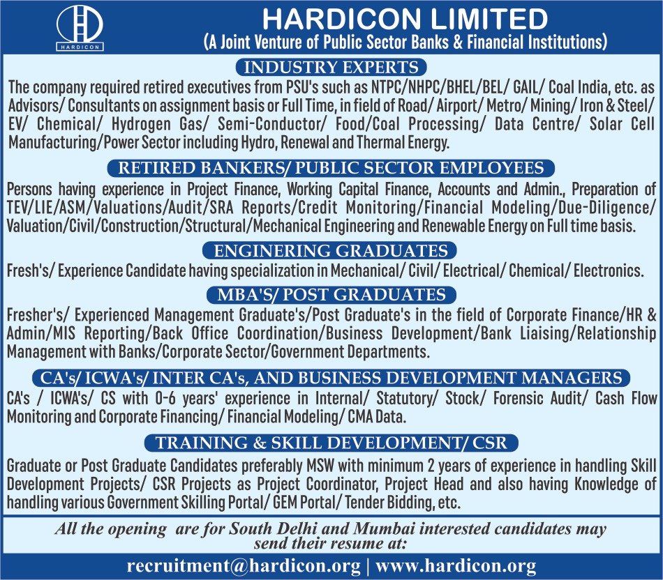 Required immediately experienced professional with MBA (Finance) and Engineering background in Civil/ Mechanical / Electrical / Chemical, having 2-3 years experience Project Consultancy, preparation of Project Reports/TEV reports and in Technical Due Diligence including Lenders Engineers assignment with reputed Consultancy Organization/ Industry